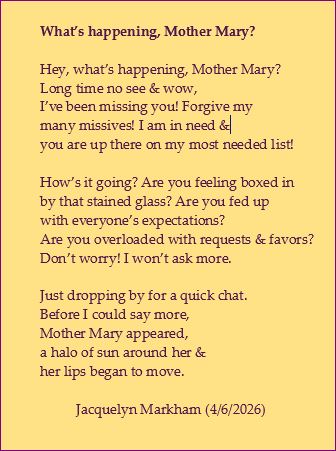 Note: Mother Mary in my poem & image is not associated with any particular religion, but more with my understanding of the feminine divine.