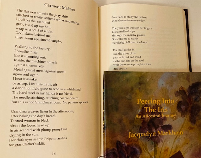 And, dear readers, I will end with a poem from my book Peering Into the Iris: An Ancestral Journey, that tells a story of my ancestors & their weaving.